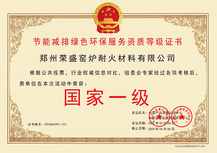 春風(fēng)沐雨,捷報(bào)傳音。近日,鄭州榮盛窯爐耐火材料有限公司被中國(guó)產(chǎn)品質(zhì)量認(rèn)證中心、中國(guó)企業(yè)品質(zhì)質(zhì)量評(píng)價(jià)中心等權(quán)威機(jī)構(gòu)聯(lián)合授予“節(jié)能減排綠色環(huán)保服務(wù)資質(zhì)等級(jí)證書(shū)”。