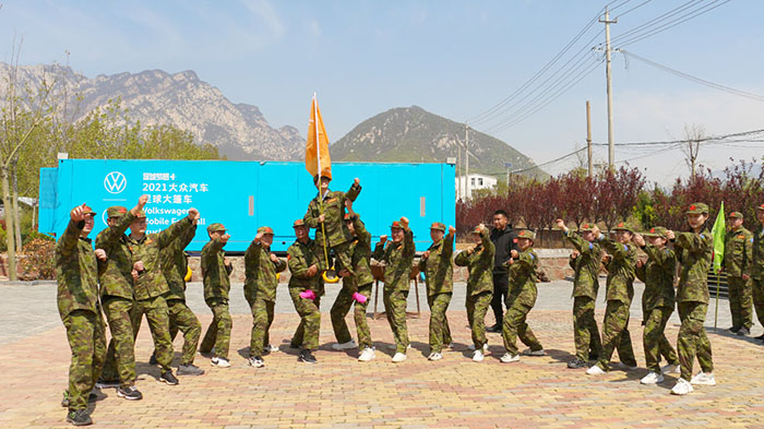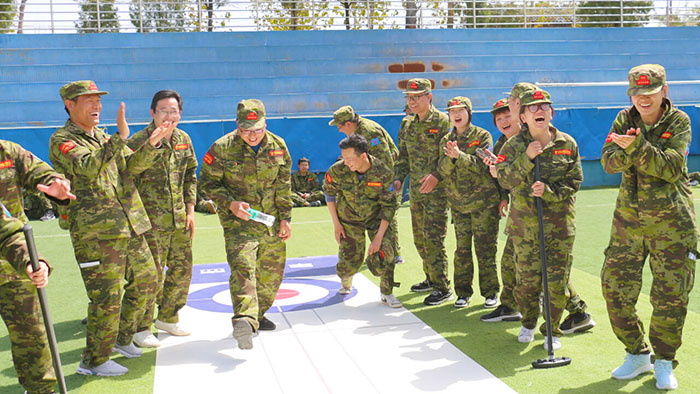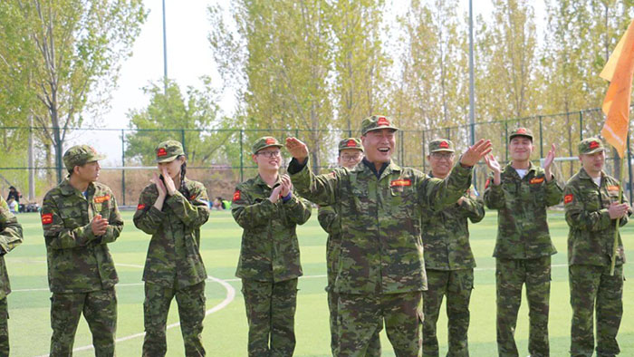 開訓(xùn)前,在破冰啟航環(huán)節(jié)——【智勇通關(guān)】項(xiàng)目中,每組選一個(gè)大魔王來防守別隊(duì),該隊(duì)隊(duì)員依次挑戰(zhàn)大魔王,石頭剪刀布定輸贏,贏了直接通過,輸了轉(zhuǎn)一圈,回來接著挑戰(zhàn),再輸即增加圈數(shù),直到全部隊(duì)員通過。大家把團(tuán)隊(duì)當(dāng)成了自己的“城堡”,在“對(duì)抗魔王”中,每個(gè)隊(duì)員都拼盡全力,期待被幸運(yùn)女神光顧,期待團(tuán)隊(duì)能盡早完成任務(wù),大家的歡笑聲、喝彩聲灑滿了訓(xùn)練場(chǎng)。