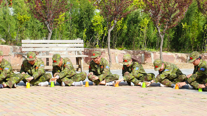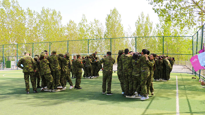 在【沙場(chǎng)點(diǎn)兵】項(xiàng)目,要求每個(gè)隊(duì)選出一個(gè)總指揮做將軍,一個(gè)協(xié)調(diào)者做軍師,剩余伙伴作為士兵。設(shè)定將軍起著總指揮的作用,但無法看見戰(zhàn)場(chǎng)的具體情況,其命令需由軍師來傳達(dá)。而軍師則只能用肢體語言告訴將軍該如何部署,士兵們則需要蒙著眼睛聽將軍命令,從而實(shí)現(xiàn)在沙場(chǎng)前進(jìn)、攻擊。當(dāng)規(guī)則定好,每個(gè)人所要做的就是各司其職。有人規(guī)劃部署,有人上傳下達(dá),有人依命令行事,雖然有理解錯(cuò)誤、聽錯(cuò)命令的情況發(fā)生,大家還是玩得不亦樂乎。在這個(gè)項(xiàng)目中,大家感悟到正確溝通的重要性。