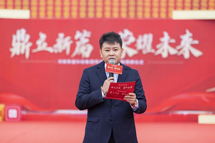 zui后,在熱情洋溢的現(xiàn)場(chǎng)氛圍中,河南榮盛科技集團(tuán)董事長(zhǎng)楚科奇發(fā)布了致辭。他首先代表集團(tuán)向蒞臨現(xiàn)場(chǎng)的各位領(lǐng)導(dǎo)、嘉賓及全體員工表示熱烈歡迎與誠(chéng)摯感謝。楚總回顧了集團(tuán)十二年的發(fā)展歷程,指出新材料生產(chǎn)基地的建成,凝聚了全體榮盛人的智慧、汗水與堅(jiān)守,是企業(yè)十二年奮斗征程上的重要里程碑,更是企業(yè)面向未來(lái)、決勝未來(lái)的戰(zhàn)略新起點(diǎn)。楚總強(qiáng)調(diào),新工廠的順利落成,得益于各級(jí)主管部門的大力支持與高效服務(wù),也離不開集團(tuán)管理層的高效協(xié)同與一線團(tuán)隊(duì)的奮力拼搏。他特別感謝了王海軍總經(jīng)理及集團(tuán)管理層,稱贊其在項(xiàng)目戰(zhàn)略定位與資源配置中發(fā)揮的關(guān)鍵作用;同時(shí),他也向宋廣林總經(jīng)理及全體建設(shè)者致敬,感謝他們不畏艱辛、全力以赴,將一片荒蕪之地打造為現(xiàn)代化智能工廠。