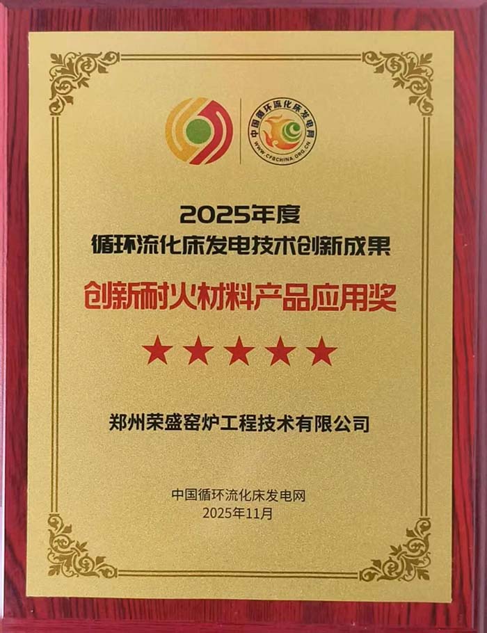 在本次大會上,鄭州榮盛窯爐工程技術(shù)有限公司憑借其在耐火材料產(chǎn)品研發(fā)與應(yīng)用方面的良好表現(xiàn),榮獲2025年度循環(huán)流化床發(fā)電技術(shù)創(chuàng)新成果“創(chuàng)新耐火材料產(chǎn)品應(yīng)用獎(jiǎng)”。該獎(jiǎng)項(xiàng)是對公司在循環(huán)流化床鍋爐耐火材料領(lǐng)域持續(xù)創(chuàng)新、技術(shù)突破與產(chǎn)業(yè)化應(yīng)用成果的權(quán)威認(rèn)可。